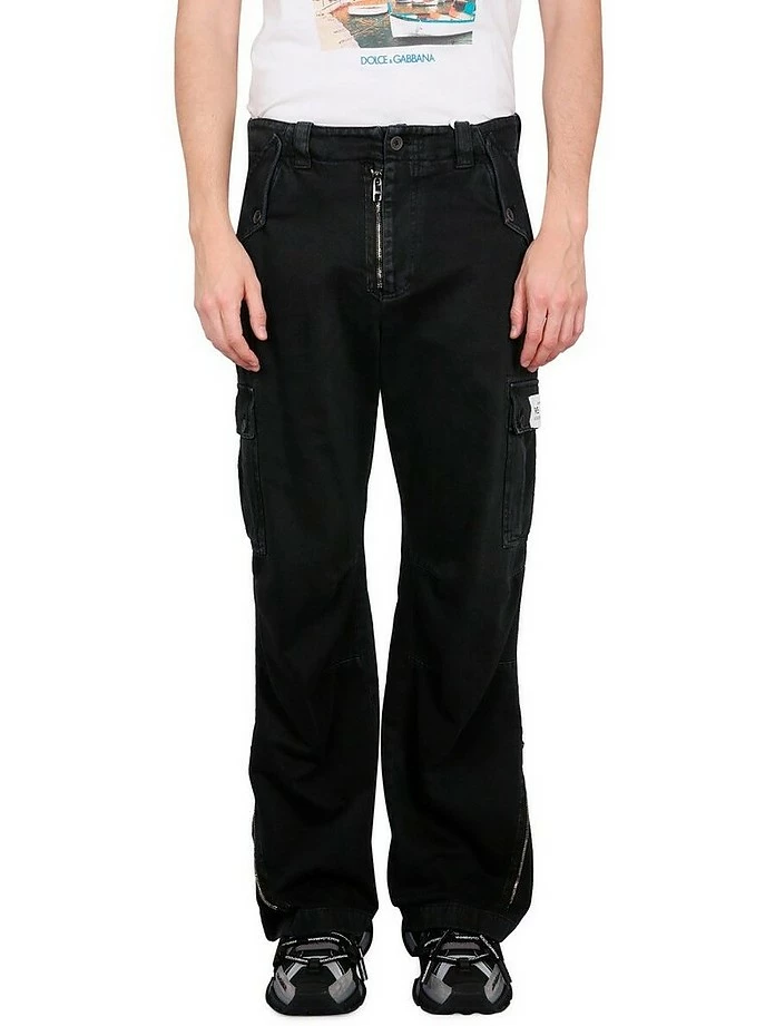 Button and zipper closure, re-edition patch, zippered leg bottom, regular fit, made in italy, the model is 180 cm tall and wears size 48 it.