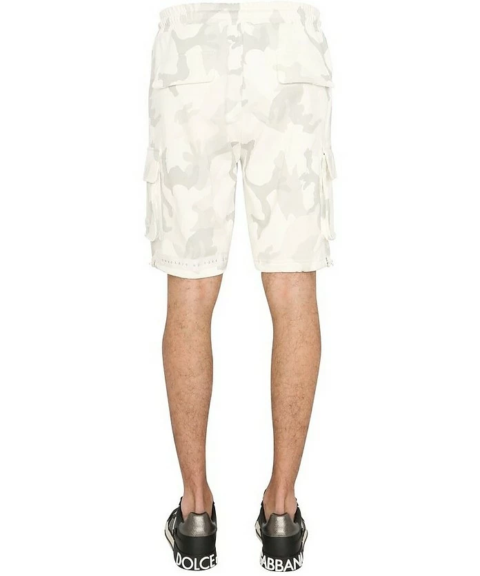 Elasticated waist with outer coulisse, two side pockets, two cargo pockets with strap closure, two back pockets with strap closure, side printed logo, cuffs at coulisse, cotton, made in italy, model is 190 cm tall and wears size l.