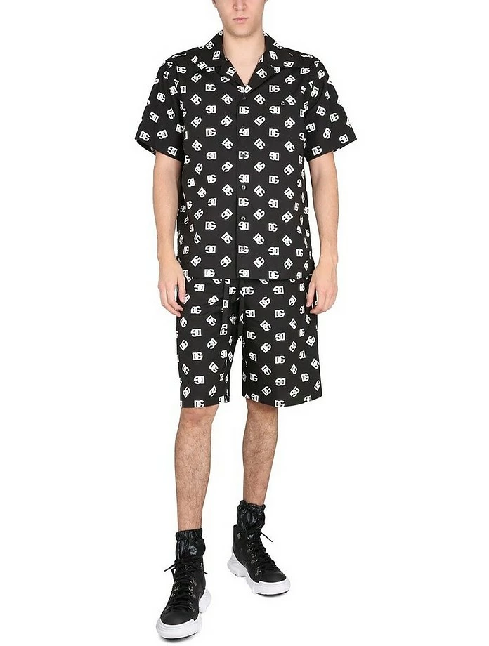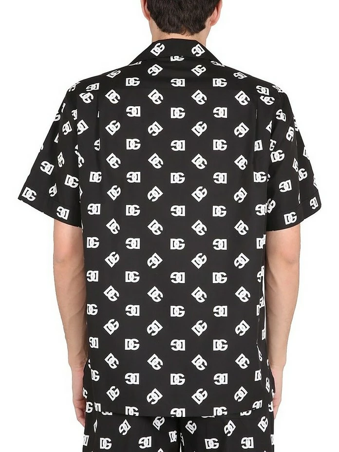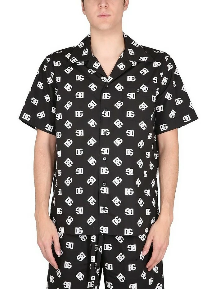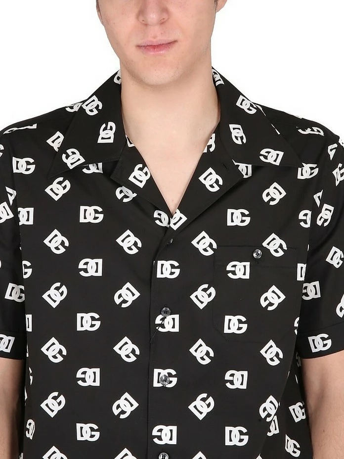 Classic collar, front button closure, one chest pocket, logo print, regular fit, made in italy, the model is 190 cm tall and wears size 41.