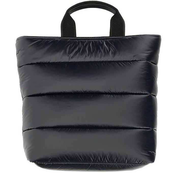 Double leather handle, logoed bigalvanic tag, nylon lining, nylon lined interior with one zippered pocket, made in italy.