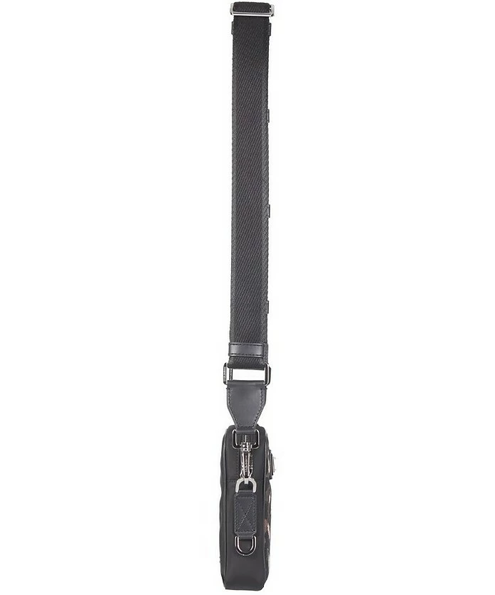Adjustable shoulder strap, zip closure, front logo label, camouflage pattern, lined inner, made in italy.