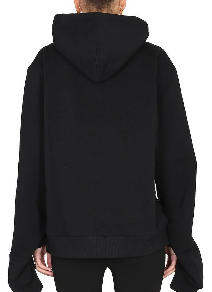 Neckline with fixed hood and drawstring, front print, ribbed edges, oversize fit, made in italy, the model is 180 cm tall and wears size s.
