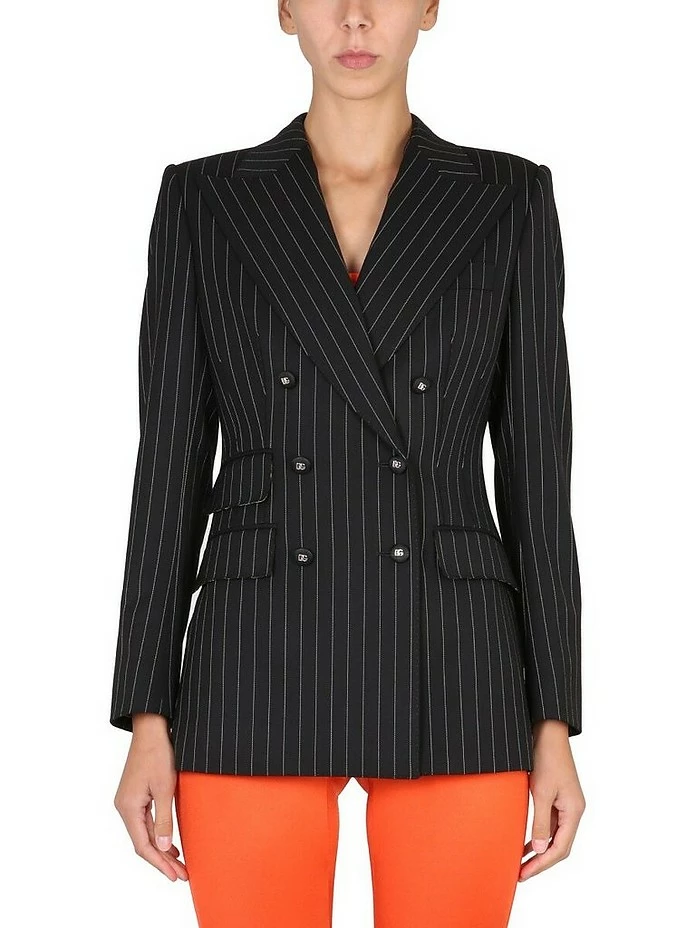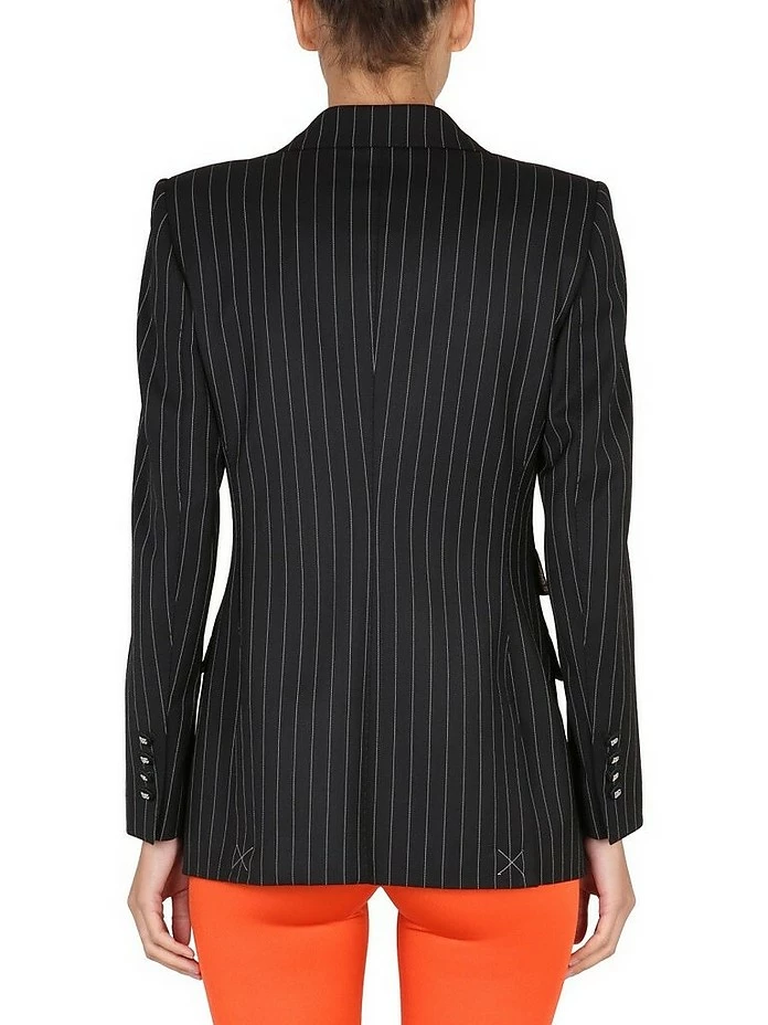 Front button closure, peaked lapels, flap pockets, stretch satin lining, made in italy, the model is 180 cm tall and wears size 42 it.