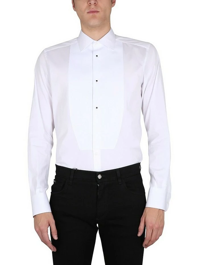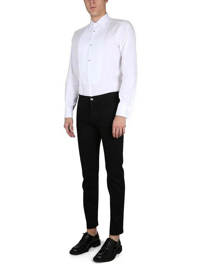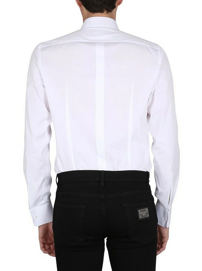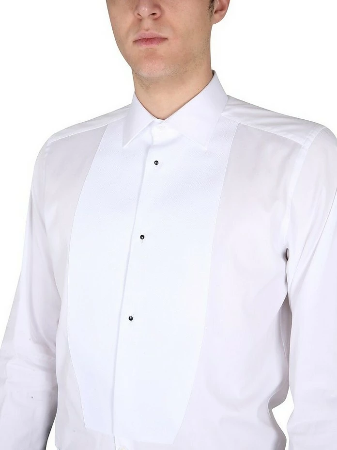 Otalian collar, jewel button closure, back yoke and small cannon, back darts, slim fit, made in italy, the model is 190 cm tall and wears size 40.